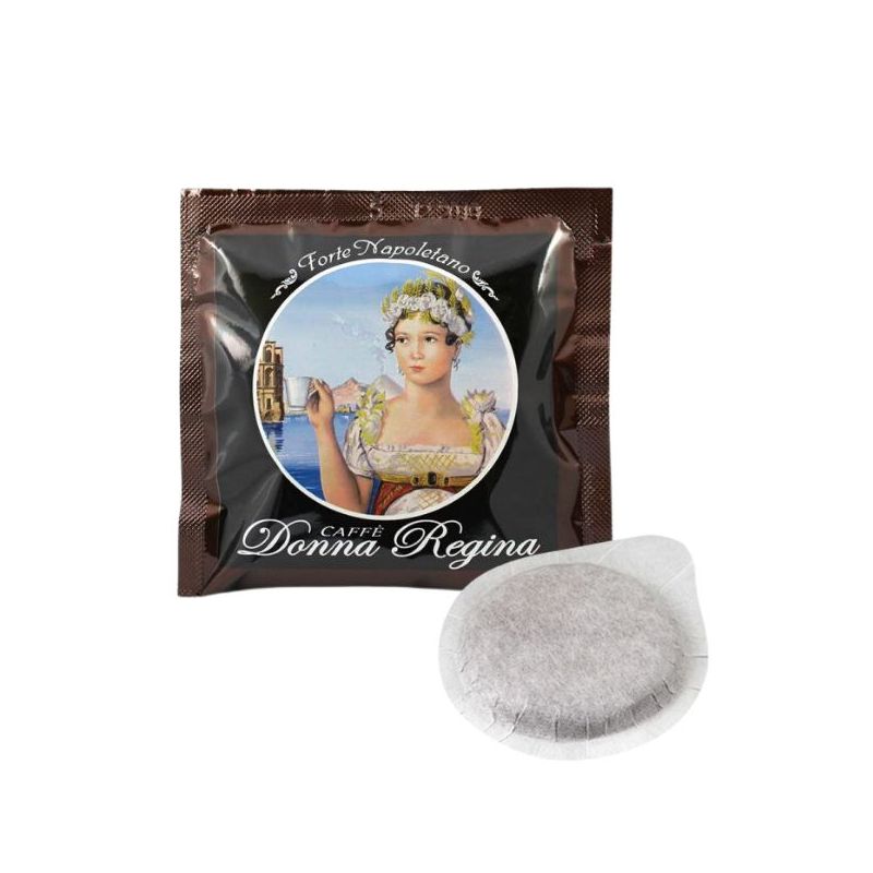 Cialde ESE44 in filtro-carta di caffè Donna Regina miscela Forte Napoletano dal gusto deciso, corposo, cremoso ed allo stesso tempo perfettamente tostato e dosato per darti un caffè unico, deciso e così buono che dopo averlo assaggiato avresti voglia di consigliarlo al tuo bar di fiducia.